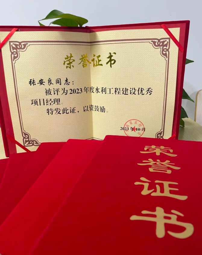 近日,河南省水利學(xué)會頒發(fā)了2023年度水利工程建設(shè)優(yōu)秀項目經(jīng)理的榮譽證書,我司多位同志榮獲此榮譽!
